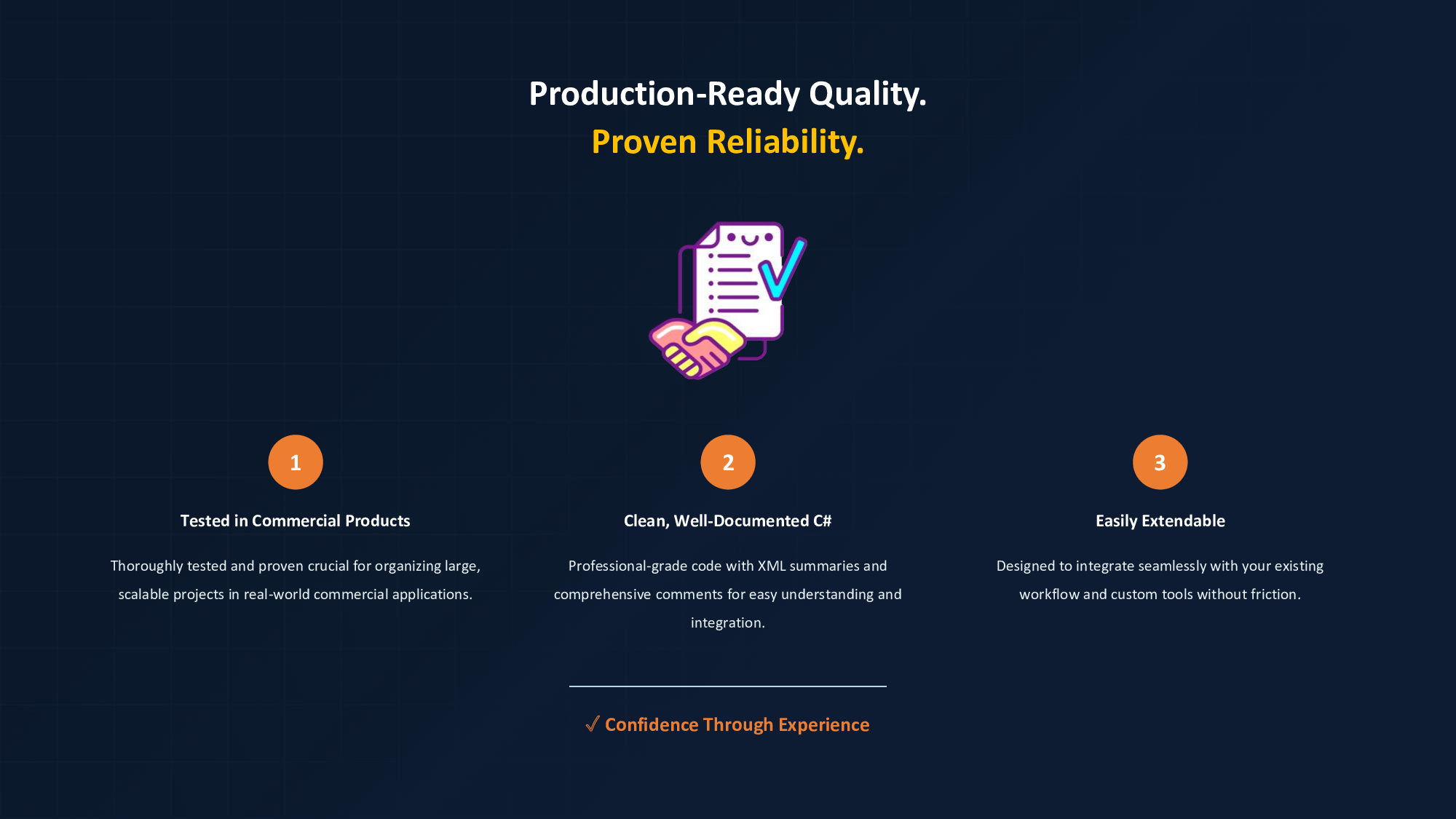 This package is clean, well-documented, and designed to be easily extended or integrated with your existing workflow. The current implementation has been tested thoroughly in commercial products and applications and has proven to be crucial for organizing large scalable projects. Implemented in Unity 6 and tested with versions down to 2022.3.25f.